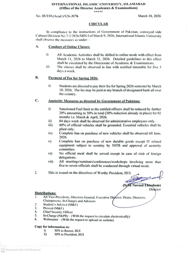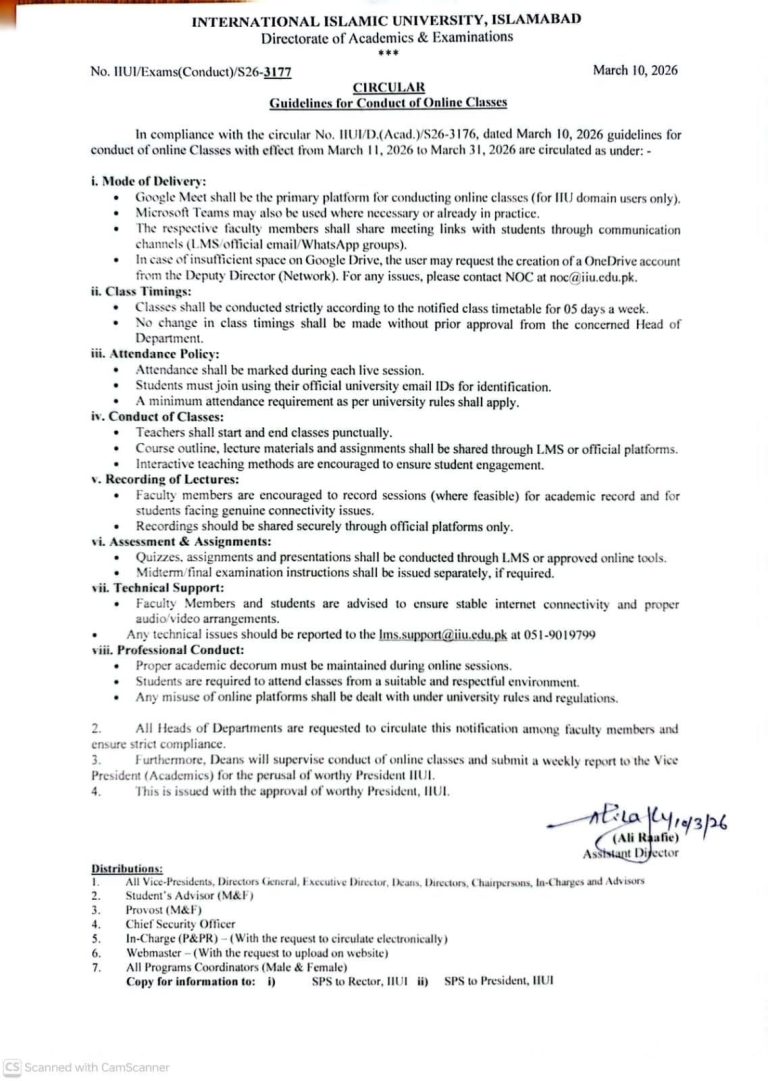 International Islamic University Islamabad Distribution Plan for Laptop Venue: Students Facilitation Centre Important Instructions: Laptop distribution will take place strictly as per the assigned time for each student. This list does not guarantee the award of a laptop. A laptop will only be issued after the complete verification of all required educational documents and CNIC, […]