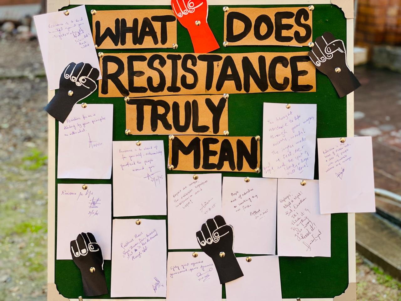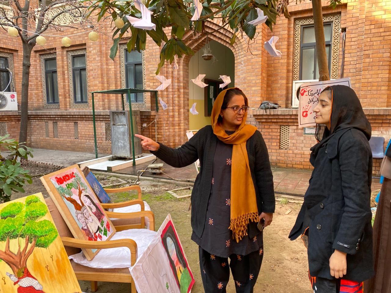 وشهد الحدث حضور الدكتورة سايمة أسلم رئيسة قسم اللغة الإنجليزية، والمستشارتين الأكاديميتين الدكتورة أمل سيد والأستاذة سارة راشد، حيث قامت الضيفات بجولة تفصيلية في المعرض اطلعن خلالها على الأعمال المشاركة، مقدّرات المستوى الفني والرمزي لكل عمل. وأكدت القيادات الأكاديمية أن موضوع المعرض يحمل دلالات معاصرة بالغة الأهمية، إذ يبرز كيف يتجلى الفن كآلية معرفية ووجودية لمقاومة المحو، وحفظ الذاكرة الجمعية، وصون الثقافة والهوية في سياقات التهميش والقمع.