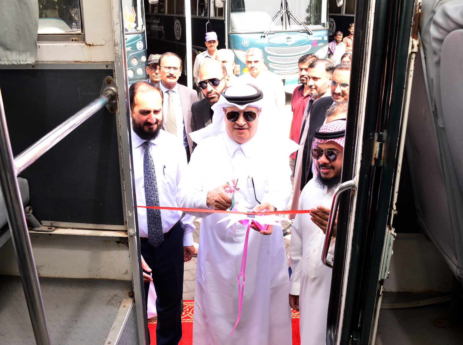 حضر الحفل نواب رئيس الجامعة، والأساتذة السعوديون، وعدد من كبار مسؤولي الجامعة. وقد شكّل هذا التدشين تعبيرًا عن العناية المستمرة بتطور الجامعة، خصوصًا في مجال تحسين خدمات النقل وتسهيل تنقلات طلابها ومنسوبيها.