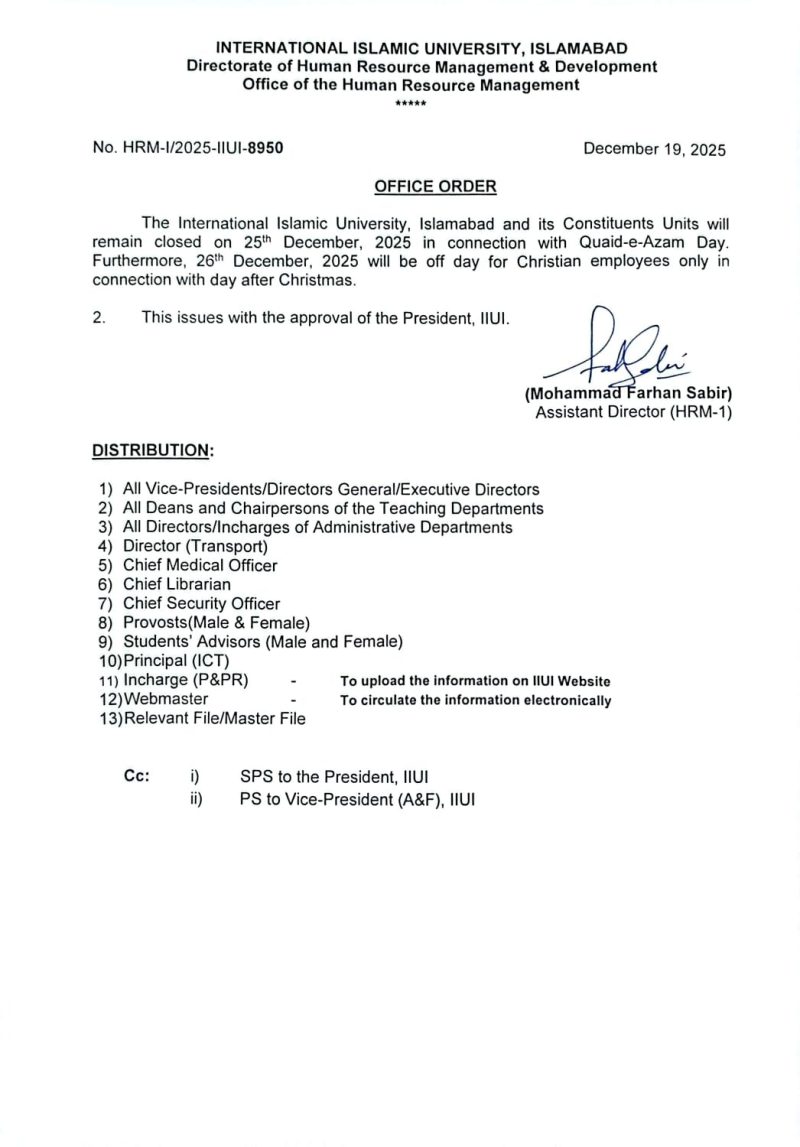 The Department of History and Pakistan Studies, Faculty of Social Sciences, International Islamic University Islamabad (IIUI), organized a day-long event to commemorate the birth anniversary of Quaid-e-Azam Muhammad Ali Jinnah. The celebrations aimed at highlighting the visionary leadership, constitutional struggle, and democratic ideals of the founder of Pakistan, with active participation from students, faculty members,...
