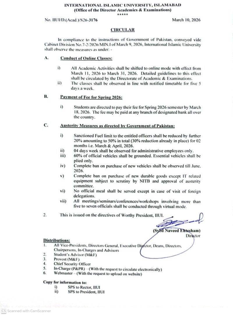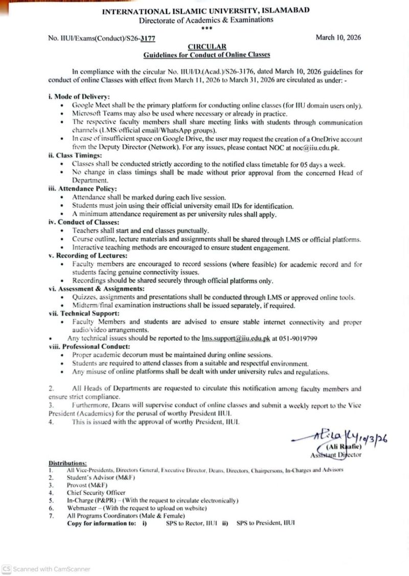 In compliance with the directives of the Islamabad Capital Territory (ICT) Administration, all students are advised to download the “1 Information” mobile application on their smartphones. Developed by Islamabad Capital Police, the application enables users to seek immediate assistance through an integrated emergency panic button in situations requiring prompt support. *This advisory is being...