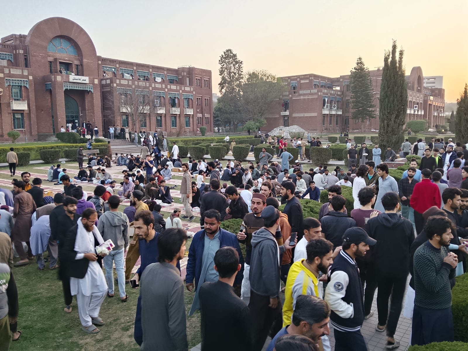 A grand Iftar dinner was hosted by the Worthy President of the International Islamic University Islamabad (IIUI), Prof. Dr. Ahmed Saad Alahmed, for all hostel-residing students at both the Male and Female Campuses. Gracing the occasion with his presence, the Worthy President personally joined more than 3,000 students, along with Dr. Saleh Sulaiman A. Alghofaili, Advisor to the President, and Dr. H. Ghufran, Director Student Affairs (M), and Dr. Ibrar Shinwari, Provost, Men’s Hostels, and Dr. Sajida Jamil, Provost, Female Hostels, Ms. Kiran Kyani, Ms. Rabia Mumtaz, security personnel and hostel staff, for Iftar in hostel lawns of the New Campus separately for male and female. Sitting among the students, he shared the meal with them, reflecting his deep care and fatherly affection for those observing the blessed month of Ramadan away from their families. The event was held under the supervision and follow-up of Dr. Saleh Sulaiman A. Alghofaili, Advisor to the President, along with Mr. Osama Jamshaid, and teams of active volunteers from the Students’ Higher Advisory Council lead by Mr. Ammar Ayyoub, and Mr. Saad Muhammad Ishaq (for male campus), and Ms. Hajira Ayaz, and Ms. Bareera Shafique (for female campus) who facilitated the arrangements, ensuring an equally well-organized and welcoming gathering for male and female hostel residents. Following Iftar, the Worthy President led the Maghrib prayer as Imam in the hostel lawns, further strengthening the spiritual bond between the leadership and the student body during the sacred month. Students expressed immense happiness and gratitude for the opportunity to share Iftar with the Worthy President. The evening concluded with a group photograph of the Honourable President with the hostel-residing students, marking a memorable moment of unity, respect, and shared belonging. The gathering served as a powerful reminder that at IIUI, students remain central to the University’s vision, and even while away from home, they are embraced as part of a caring and supportive academic family.