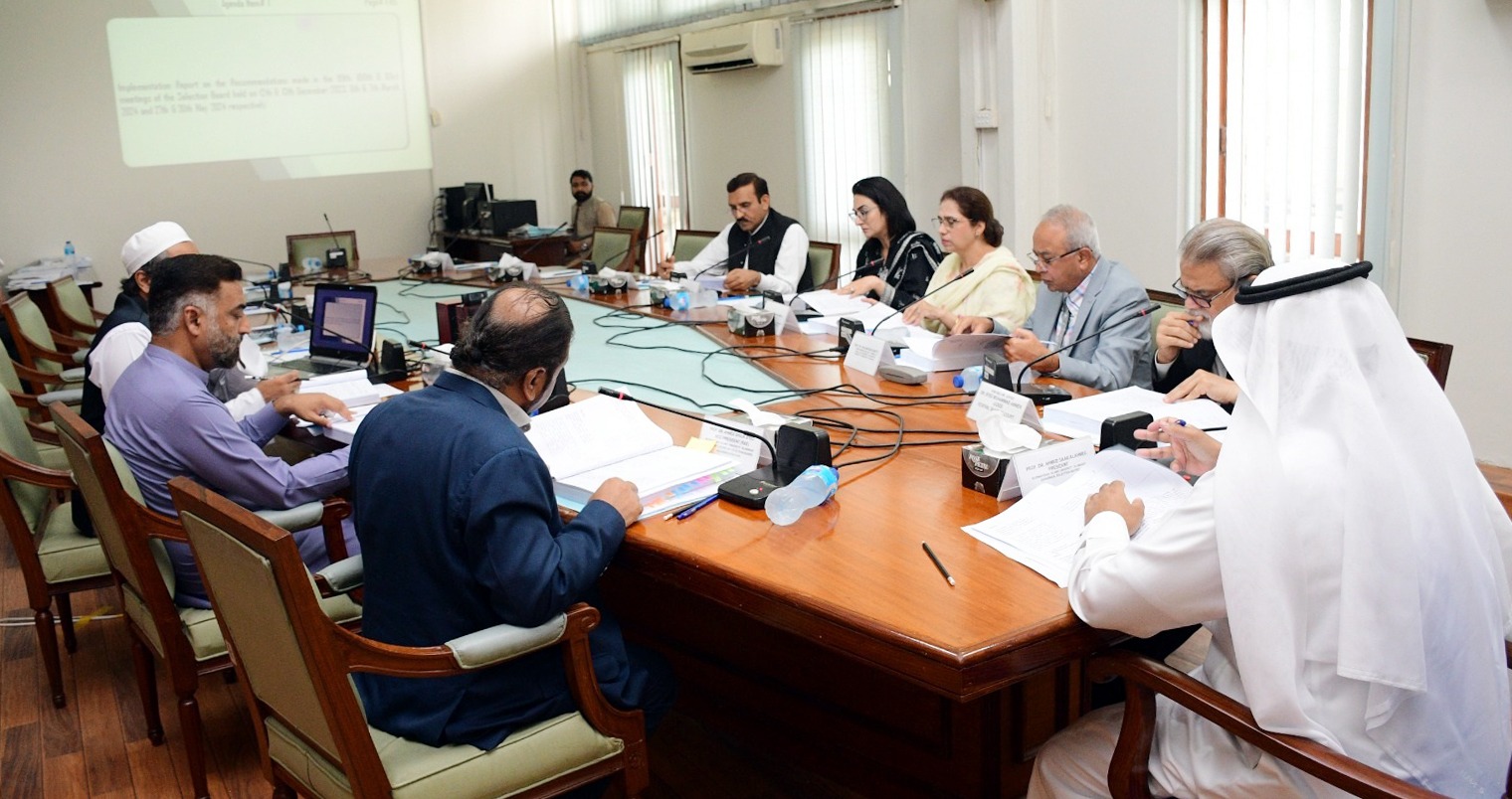 Islamabad – The International Islamic University Islamabad (IIUI) convened its 102nd Selection Board meeting at the Faisal Masjid Campus, chaired by the University President, Prof. Dr. Ahmed Saad Alahmed.