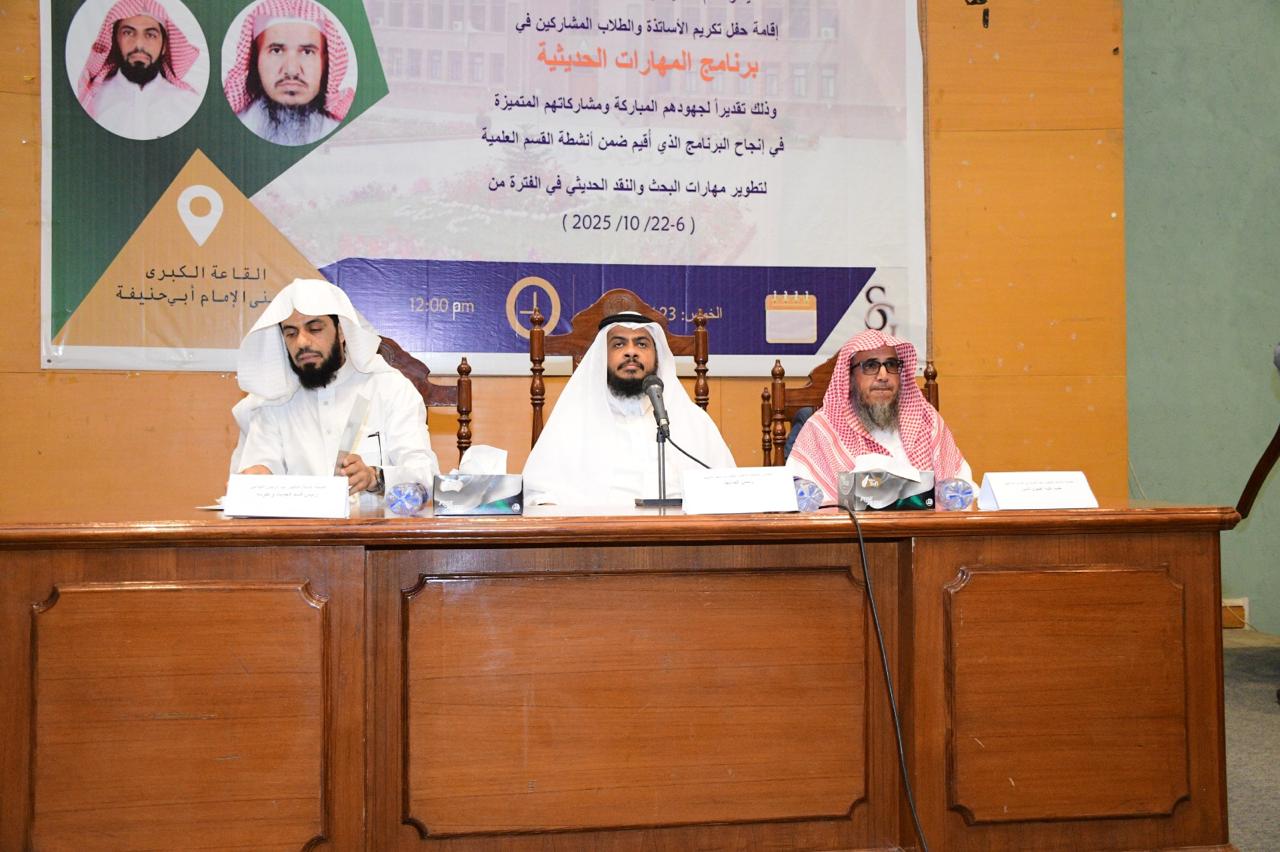 Prof. Dr. Abdulrahman bin Ahmed Al-Awaji, Head of the Department of Hadith and its Sciences, opened the ceremony by expressing gratitude to Allah Almighty and extended thanks to the University President for his continued support of academic initiatives. He highlighted the department’s commitment to advancing scholarly activities in the field of Hadith.