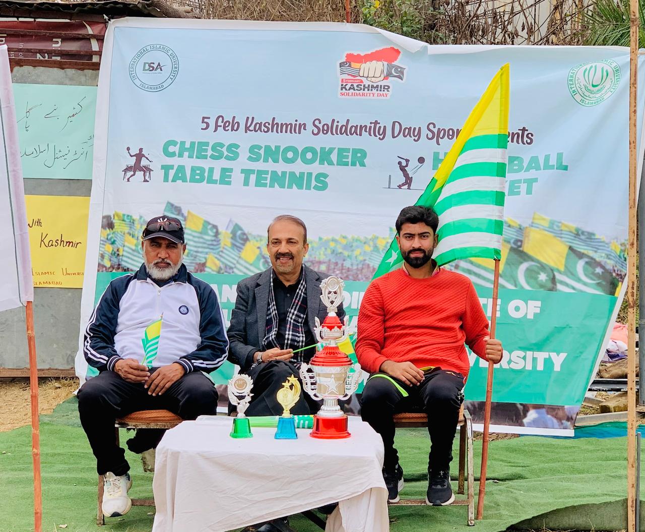 The Directorate of Student Affairs (Male) continued the ongoing Kashmir Solidarity Week activities at the International Islamic University Islamabad by organizing a Kashmir Solidarity Day Cricket Match. The event brought together students, staff, and sports officials, reinforcing the spirit of unity, camaraderie, and support for the Kashmiri cause through sports.