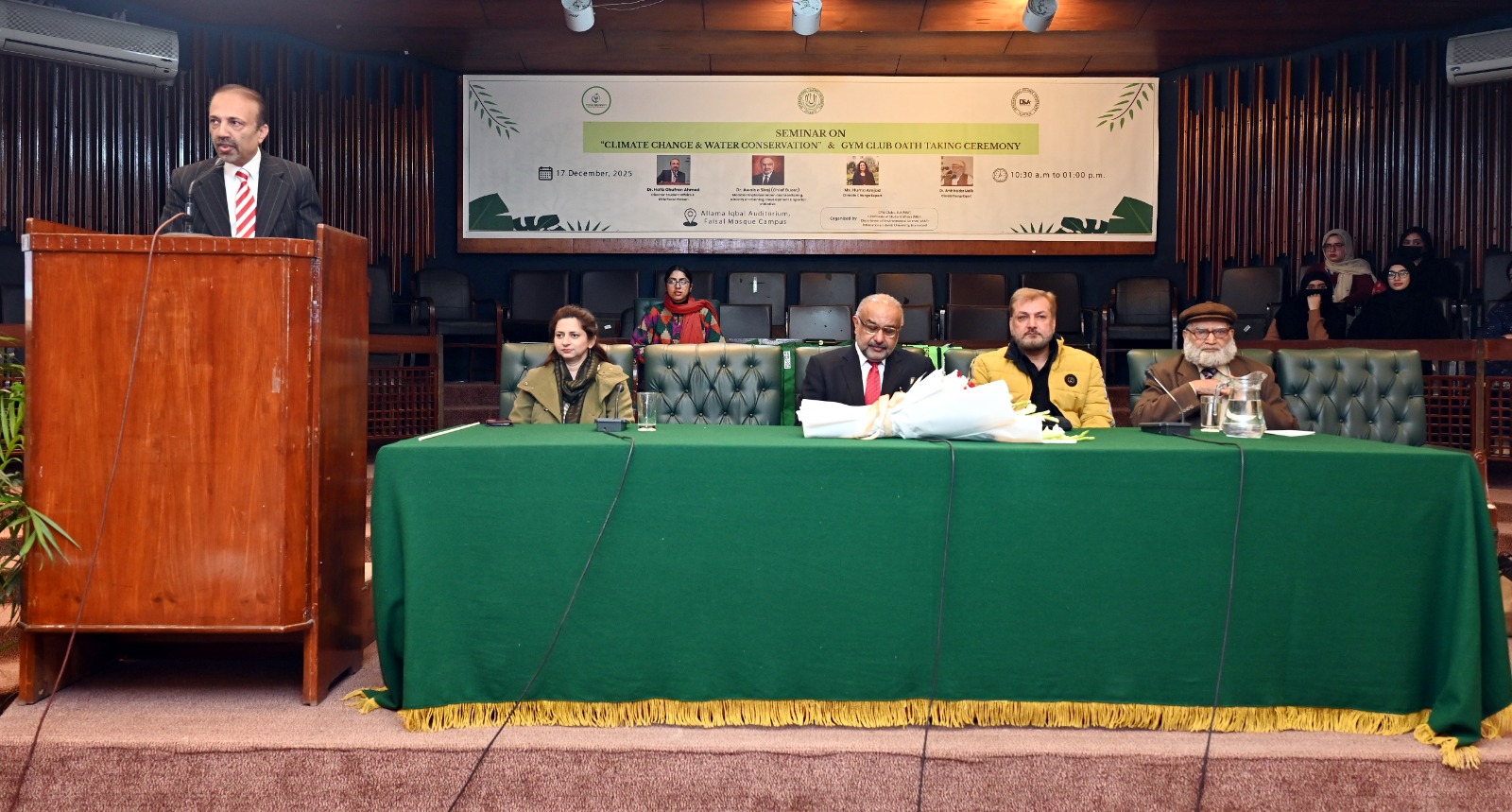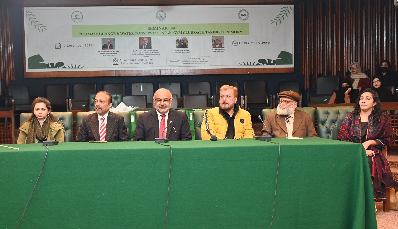 A seminar on climate change and water conservation was organized at the International Islamic University Islamabad (IIUI), jointly arranged by the Directorate of Student Affairs (Male and Female) in collaboration with the Department of Environmental Science (Male and Female) and the Green Youth Movement Clubs of both campuses. The event highlighted key environmental challenges faced by Pakistan and was held alongside the oath-taking ceremony of the newly elected cabinet of the Green Youth Movement Club.