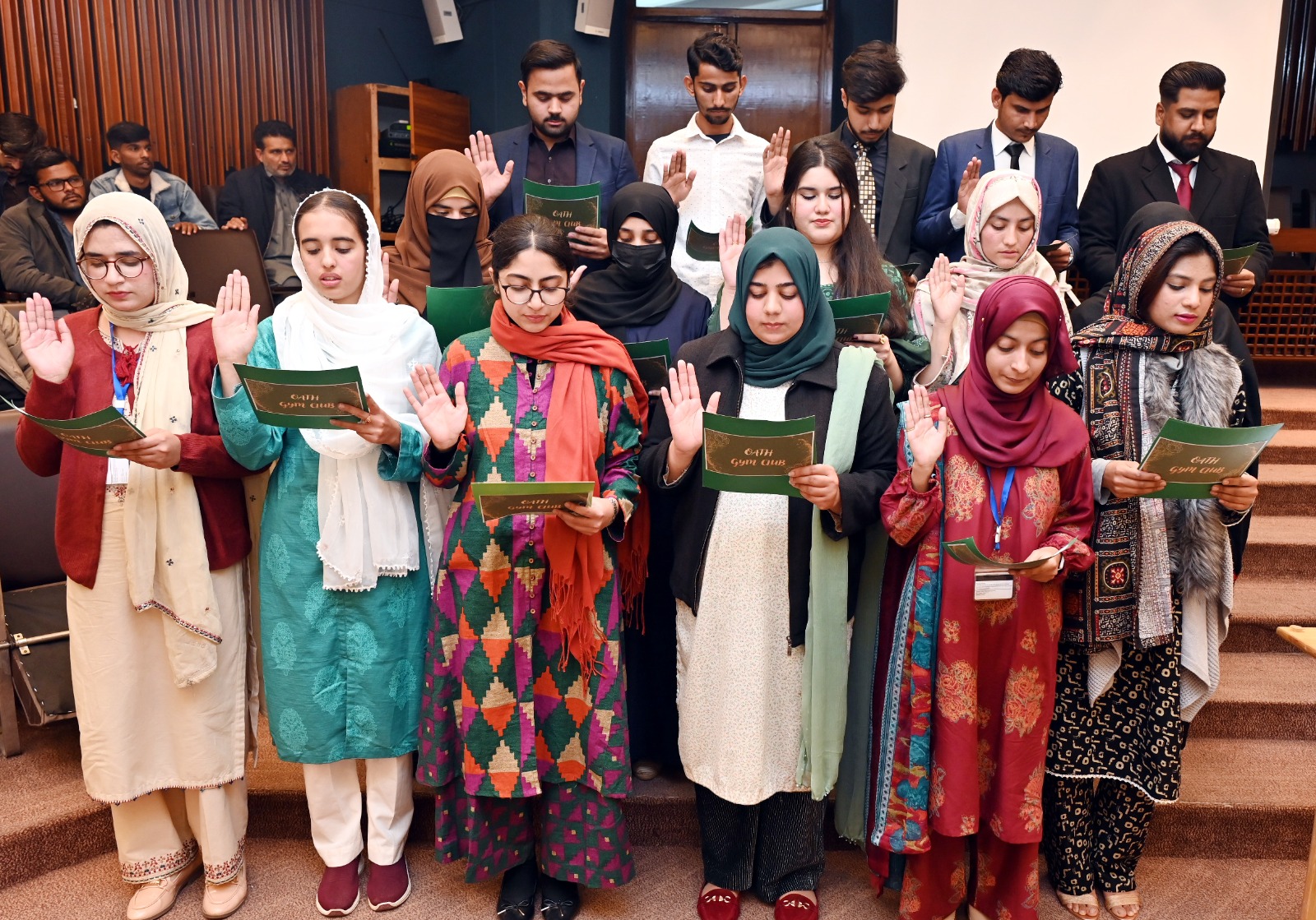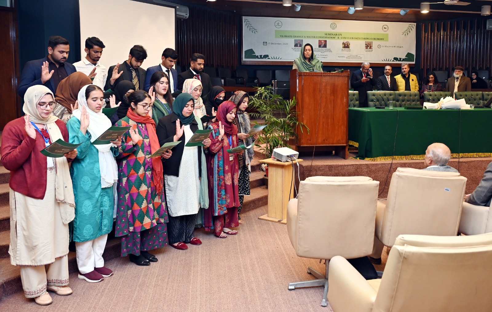 Following the seminar, the oath-taking ceremony of the newly elected cabinet of the Green Youth Movement Club was conducted by Dr. Sarah Amir, Focal Person of the Club for both male and female campuses. The newly elected members pledged to actively contribute to environmental sustainability and promote youth-led climate initiatives.