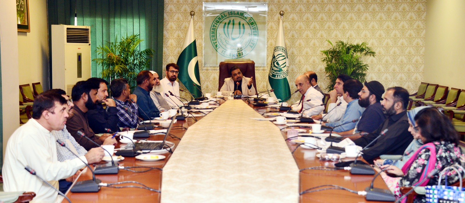 The Travel Grant (TG), Conferences/Seminars and Workshops (CSW) Committee at the International Islamic University Islamabad (IIUI) held a productive meeting on Monday, chaired by Prof. Dr. Ahmed Shuja Syed, Vice President (Research and Enterprise). The primary agenda involved the thorough review and subsequent approval of various proposals for workshops, seminars, and conferences. These proposals were submitted by key faculties, including the Faculty of Engineering and Technology, the Faculty of Social Sciences, CIRBS, the Islamic Research Institute, and the Sharia Academy, demonstrating a collaborative effort to advance academic and research endeavors across disciplines.
