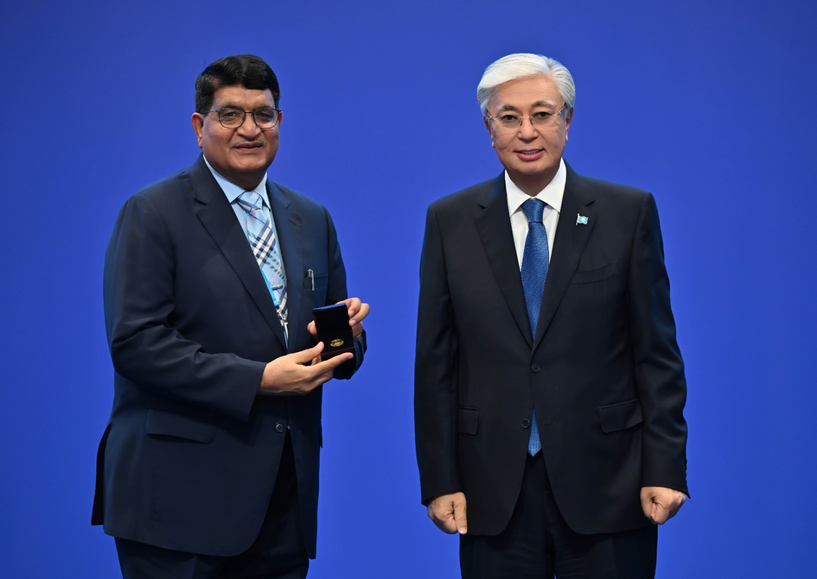 During the opening ceremony of the 8th Congress on September 17, 2025, His Excellency Kassym-Jomart Tokayev, President of the Republic of Kazakhstan, awarded him the emblem of the title.