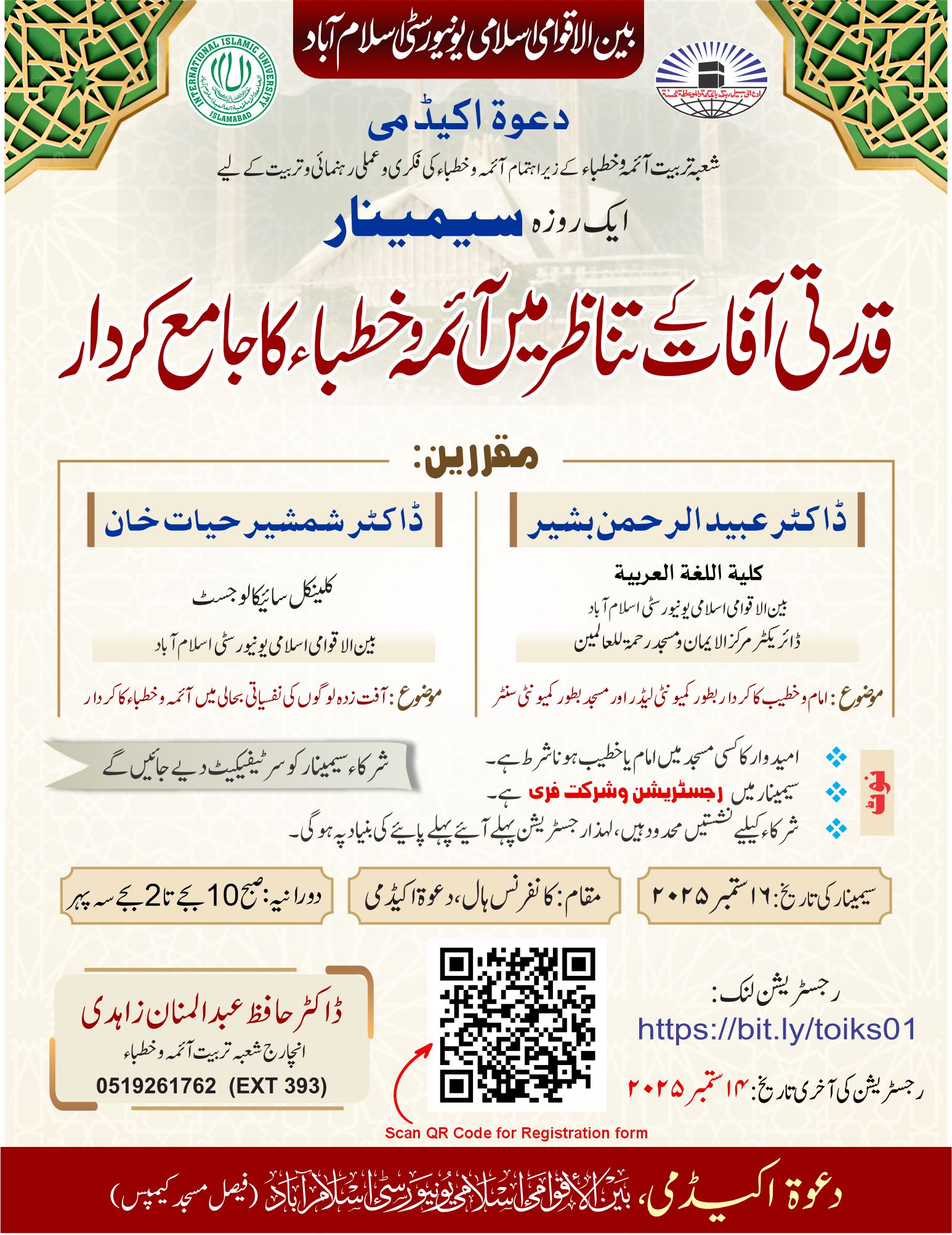 One Day Seminar on “The role of Religious Imams & Khateebs in Natural Disasters”