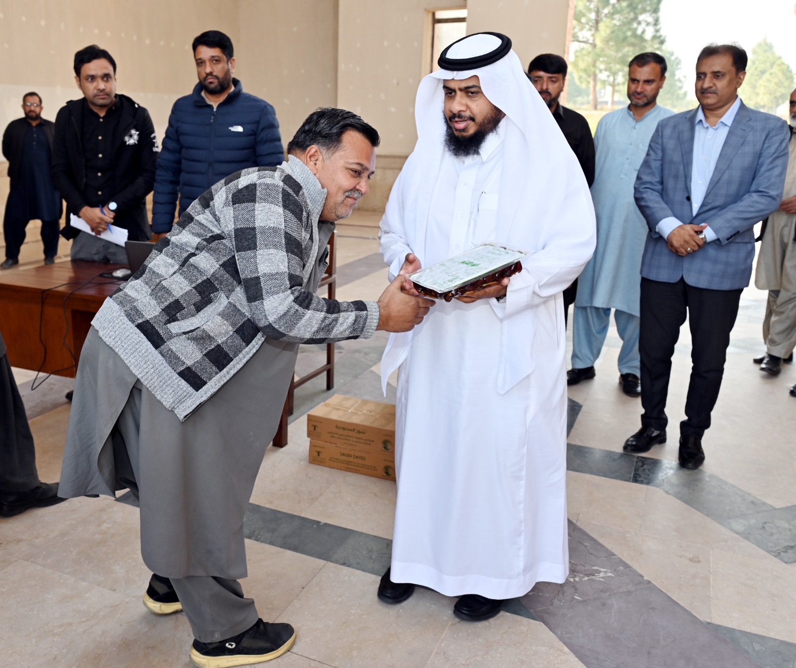 قام معالي رئيس الجامعة الإسلامية العالمية بإسلام آباد، الأستاذ الدكتور أحمد سعد الأحمد، يوم الأربعاء، بتوزيع التمور المهداة من المملكة العربية السعودية على موظفي الجامعة من الدرجات الأولى حتى العاشرة، تقديرًا لجهودهم المتواصلة وخدمتهم المخلصة لمنظومة الجامعة. وأكد معاليه خلال اللقاء أن رعاية شؤون الموظفين والاهتمام بمصالحهم تمثلان أولوية راسخة لدى الإدارة، مشيرًا إلى أن […]
