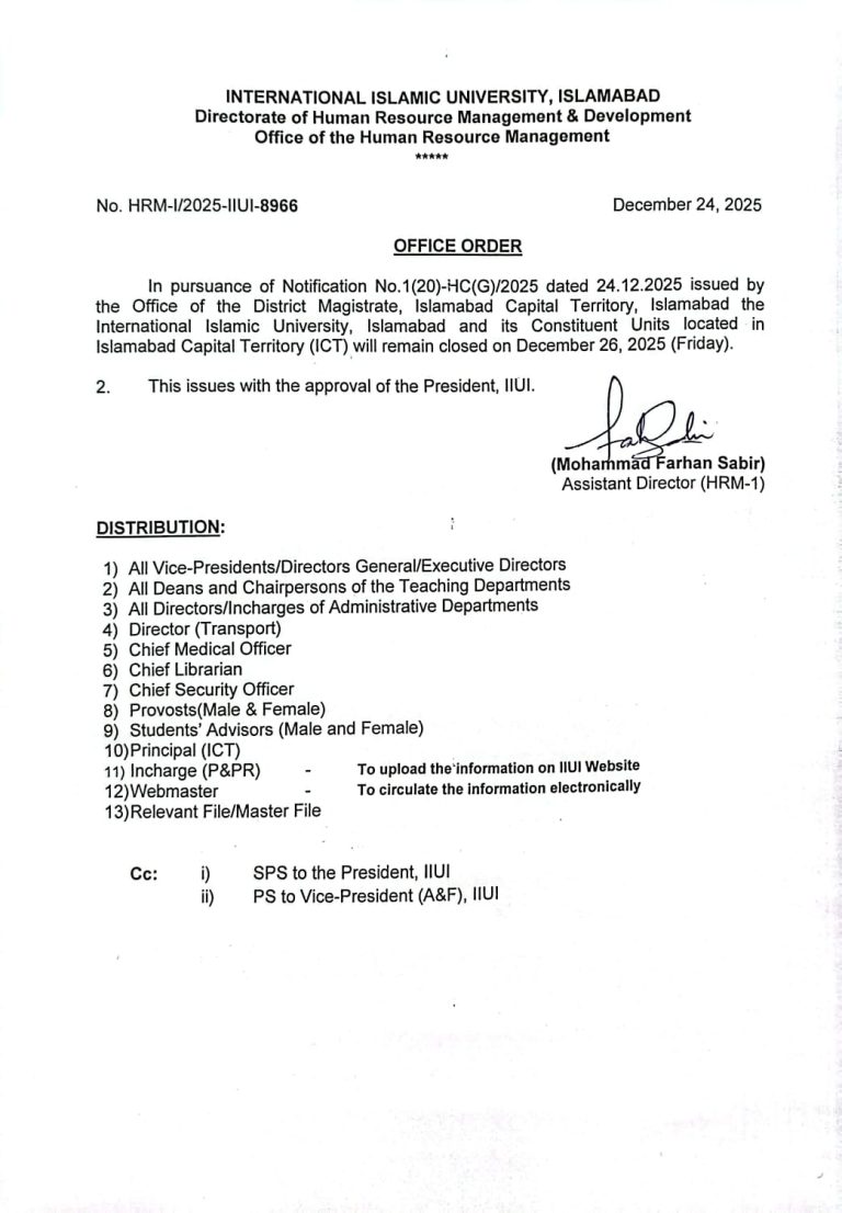 International Islamic University Islamabad Distribution Plan for Laptop Venue: Students Facilitation Centre Important Instructions: Laptop distribution will take place strictly as per the assigned time for each student. This list does not guarantee the award of a laptop. A laptop will only be issued after the complete verification of all required educational documents and CNIC, […]