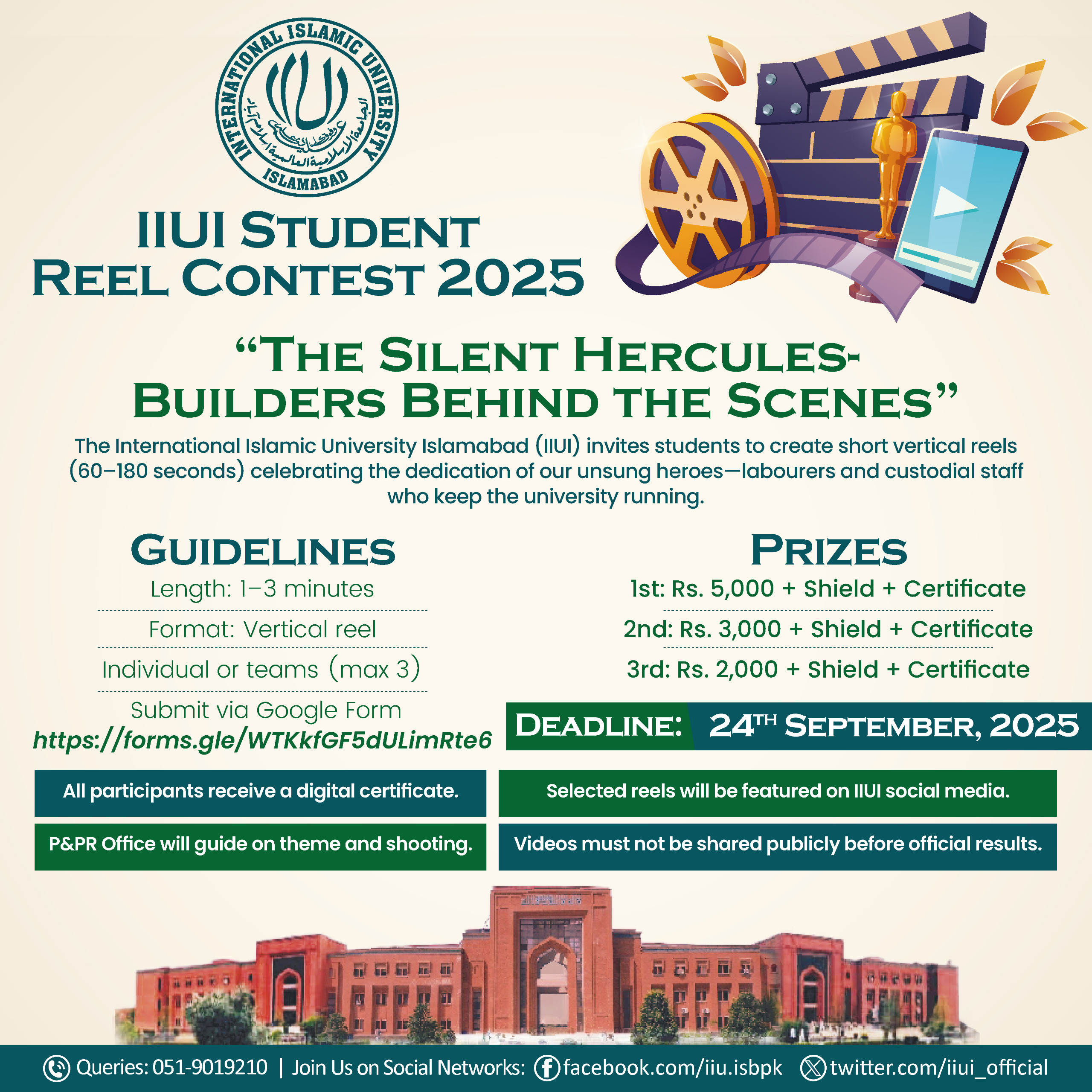 The Faculty of Sciences (FoS), International Islamic University Islamabad (IIUI), organized a Sports Certificates Distribution Ceremony for participants of the 2025 Sports Gala at the Faculty Seminar Room. The ceremony was attended by Dean, Faculty of Sciences, Prof. Dr. Mushtaq Ahmad; Director Students Affairs, Dr. Hafiz Ghufran Ahmad; and Faculty Sports Focal Person, Dr. Bashir […]