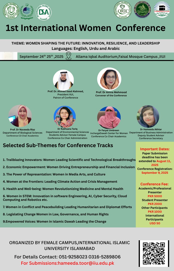 In an era defined by rapid transformation and global challenges, the contributions of women across sectors are more critical than ever. From leading climate action to advancing technology, women are at the forefront of change. The 1st Women Conference at IIUI aims to celebrate, amplify, and strategize around the multifaceted roles women play in shaping a sustainable and equitable future.